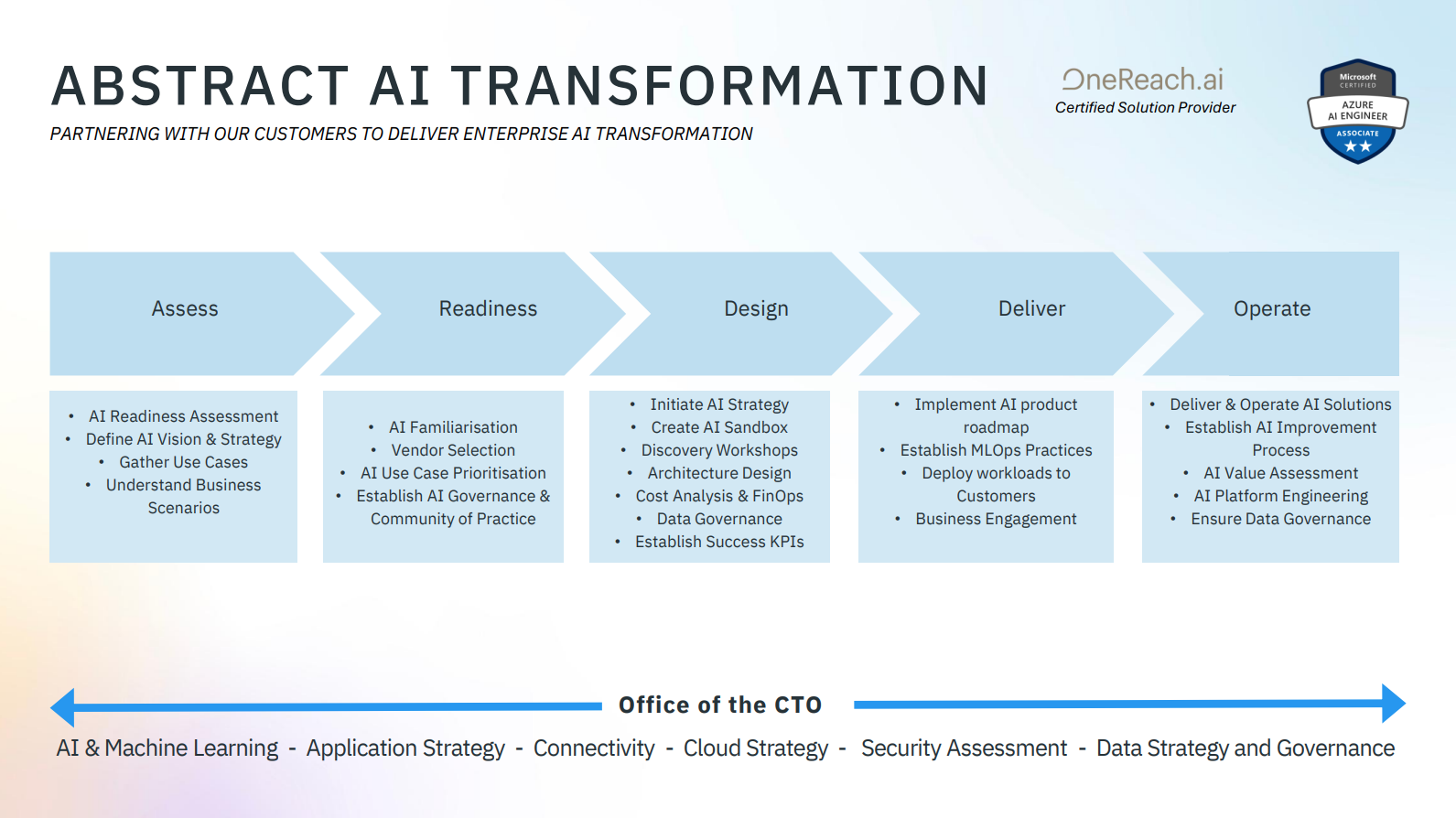 Abstract Group exemplifies this model through its AI Transformation Framework, which underpins initiatives in insurance claims processing, mobile app concierge services, and energy billing automation. These projects demonstrate how a structured, scalable approach to IA can deliver tangible outcomes across industries.